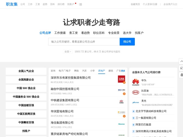 职友集(全称:职友集:发现和了解你未来的雇主)于2022年05月08日收录在本站评测分享分类目录,并成功建立了索引服务,供搜索引擎抓取/蜘蛛爬行/用户查找/检索服务;截至目前为止,本站已有 963个网友浏览了职友集网站。