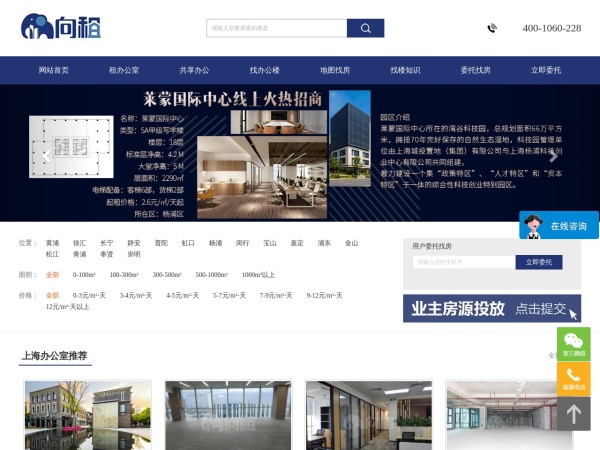 向租网(全称:上海写字楼_上海办公楼_办公室租赁/出租/租金价格信息-向租网)于2022年05月10日收录在本站房产网站分类目录,并成功建立了索引服务,供搜索引擎抓取/蜘蛛爬行/用户查找/检索服务;截至目前为止,本站已有 800个网友浏览了向租网网站。