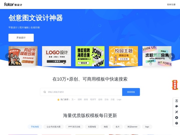 Canva在线设计(全称:Canva可画_在线设计协作平台_平面设计作图软件_视觉办公套件 - Canva中文官网)于2025年02月18日收录在本站设计素材分类目录,并成功建立了索引服务,供搜索引擎抓取/蜘蛛爬行/用户查找/检索服务;截至目前为止,本站已有 488个网友浏览了Canva在线设计网站。