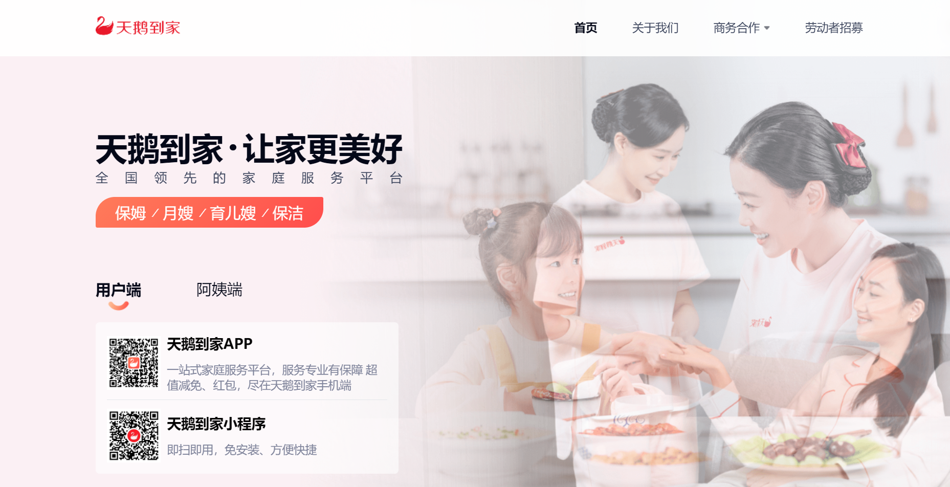 北京天鹅(全称:北京天鹅到家保姆_月嫂_育儿嫂 - 天鹅到家优质生活服务 专业、便捷、安心!)于2026年02月06日收录在本站家政服务分类目录,并成功建立了索引服务,供搜索引擎抓取/蜘蛛爬行/用户查找/检索服务;截至目前为止,本站已有 6个网友浏览了北京天鹅网站。