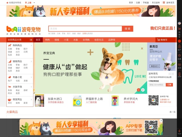 波奇宠物商城是多家知名宠物用品官方授权宠物商城.在波奇不仅有各种知名品牌的狗粮,猫粮,还能找到宠物玩具,宠物日用品等多种宠物用品.选择波奇,健康宠物生活从波奇开始。