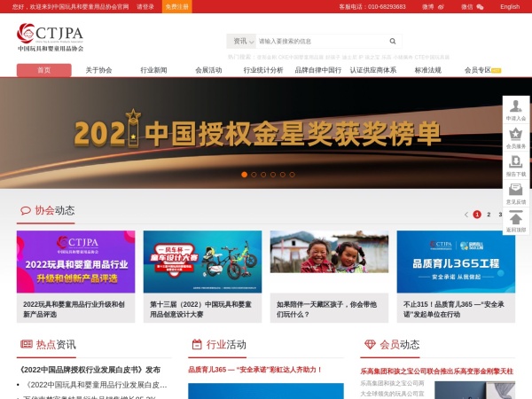 中国玩具婴童网是中国玩具和婴童用品协会官网,中国玩具和婴童用品协会成立于1986年,为国资委和国家民政部归口管理的国家级行业协会,是中国唯一的全国性玩具和婴童用品行业社团组织,是中国政府指定的中国玩具和婴童用品行业在国际玩具工业理事会(ICTI)的唯一合法代表,同时,也是政府、企业、媒体和消费者认可的中国玩具和婴童用品行业的代言人。,