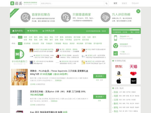 最全的实时折扣聚合,汇聚了什么值得买、美国便宜货、折800、惠惠网、北美省钱快报、360特惠等多个网站的折扣,以京东亚马逊苏宁国美等大商家信息为主,每天千余条。
