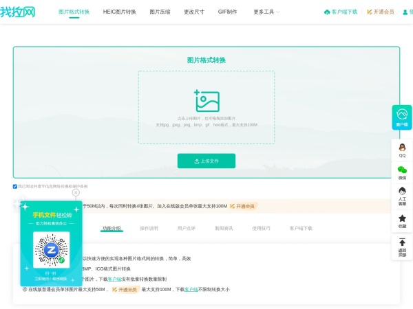 在线图片格式转换工具支持.jpg .jpeg .png .bmp .heic .icon .gif此类图片格式之间互相转换,可以迅速将.jpg转换成.png、.bmp的图片格式.无需安装,完全免费!
