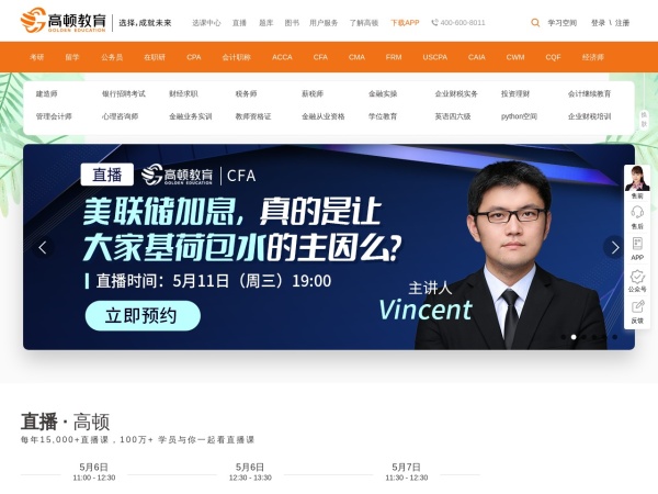 高顿教育提供ACCA,CPA,CMA,AICPA,CFA,初级会计职称,中级会计职称,会计实操,证券从业资格,期货从业资格,银行从业资格等考试报名时间,报名条件,报名入口,模拟试题,高清网络课程等辅导资料!
