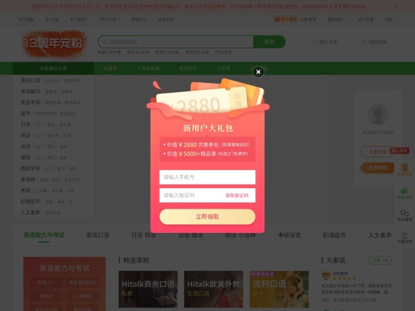 沪江网校(全称:沪江网校-英日法韩13国外语、考研留学、职场兴趣在线学)于2022年05月16日收录在本站在线教育分类目录,并成功建立了索引服务,供搜索引擎抓取/蜘蛛爬行/用户查找/检索服务;截至目前为止,本站已有 1045个网友浏览了沪江网校网站。