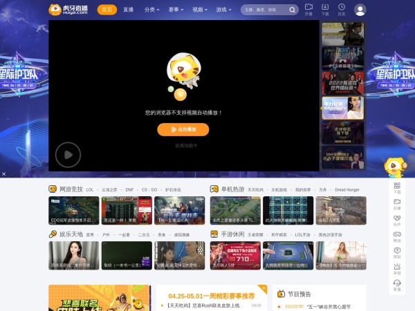 本站收录库提供的虎牙直播都来源于网络,不保证外部链接的准确性和完整性,同时,对于该外部链接的指向,不由收录库实际控制,在2022年05月01日收录时,该网页上的内容,都属于合规合法,后期网页的内容如出现违规,可以直接联系网站管理员进行删除(点我反馈)。