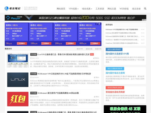 老左笔记(全称:老左笔记 - 便宜VPS_美国主机_域名优惠码_免费VPS及VPS教程)于2022年05月02日收录在本站域名主机分类目录,并成功建立了索引服务,供搜索引擎抓取/蜘蛛爬行/用户查找/检索服务;截至目前为止,本站已有 504个网友浏览了老左笔记网站。