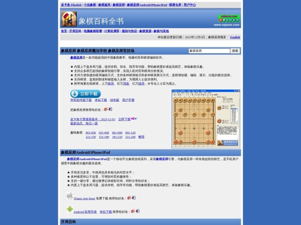 象棋巫师(全称:象棋巫师 - 象棋百科全书)于2024年03月01日收录在本站棋牌健身分类目录,并成功建立了索引服务,供搜索引擎抓取/蜘蛛爬行/用户查找/检索服务;截至目前为止,本站已有 743个网友浏览了象棋巫师网站。