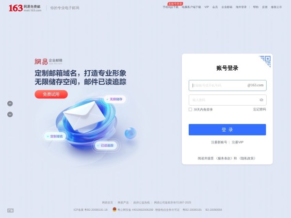 163网易邮箱(全称:163网易免费邮-你的专业电子邮局)于2025年02月21日收录在本站邮箱大全分类目录,并成功建立了索引服务,供搜索引擎抓取/蜘蛛爬行/用户查找/检索服务;截至目前为止,本站已有 372个网友浏览了163网易邮箱网站。