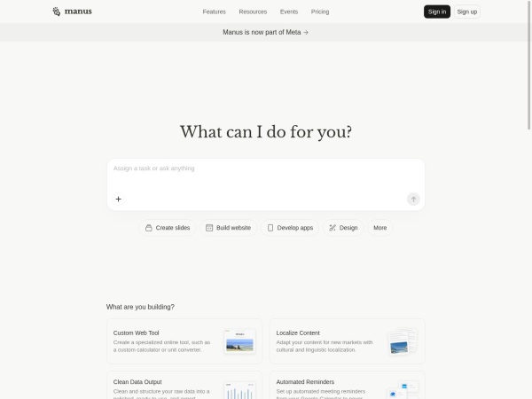 Manu(全称:Manus: Hands On AI)于2026年02月02日收录在本站AI智能分类目录,并成功建立了索引服务,供搜索引擎抓取/蜘蛛爬行/用户查找/检索服务;截至目前为止,本站已有 17个网友浏览了Manu网站。