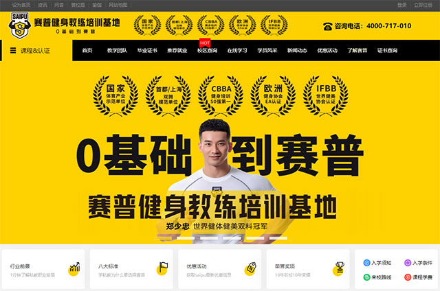 赛普健身是中国健美协会指定健身教练培训基地,专业健身教练十佳金牌培训机构,考试通过后即可颁发健身教练资格证,建校十年来致力于私人健身教练培训行业的终生教育,成为专业度更高的健身教练培训学校。