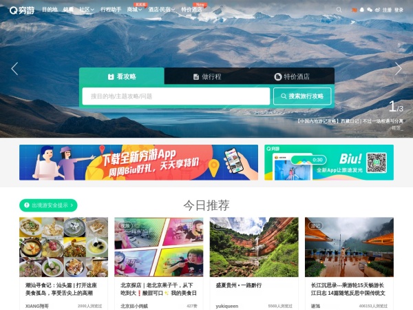 【穷游网】鼓励和帮助中国旅行者以自己的视角和方式体验世界,为旅行者提供专业、实用、全面的游旅行指南和旅游攻略,是中国旅行者们分享旅游目的地信息和游记攻略的平台。