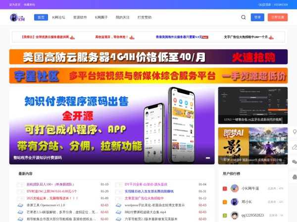 小K网专注于免费提供最新的QQ技术分享拥有独特领域的游戏资源,专业负责人掌控QQ活动动态,多方面性质资源分享,免费源码交流学习基地,绿色、安全、搞笑的软件基地.