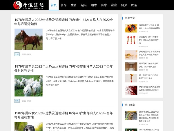 开运随记生辰八字算命,算命网,算命最准的免费网站,内容包括:算命,免费算命,生肖,起名,相术,风水,星座,民俗,解梦等测算内容。